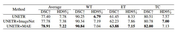 BraTS:实例归一化,在预训练和微调中,我们随机翻转和裁剪128 × 128 × 128的体积。
